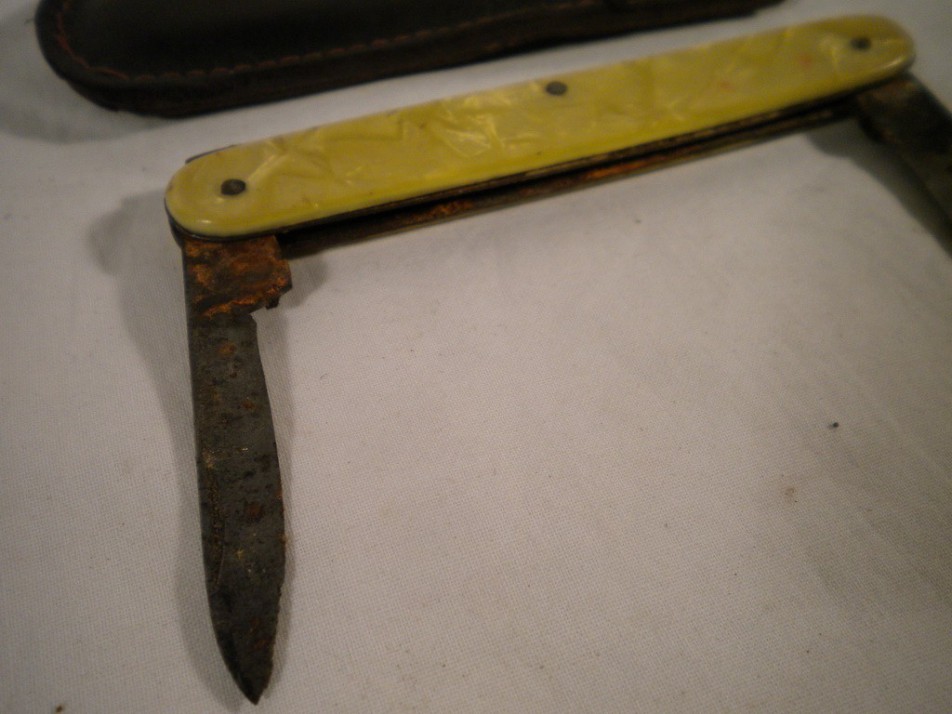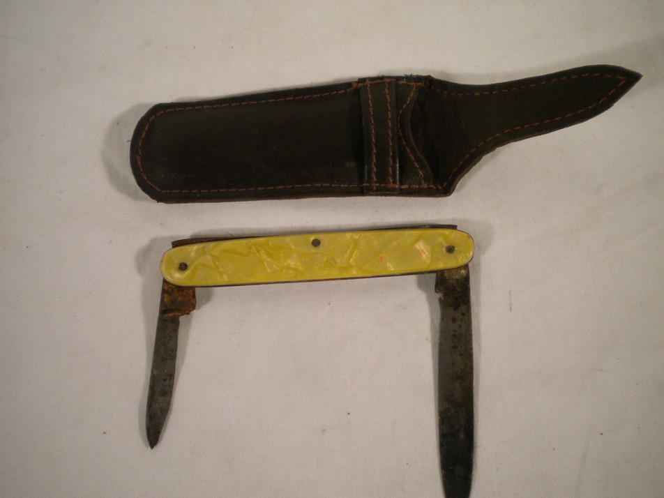 Régi bicska 2 késes kagyló nyelű
