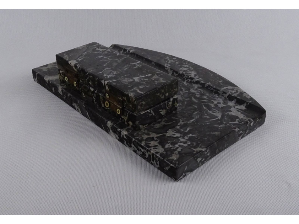 Régi nagyméretű, szép állapotú, szürkés színű márvány tintatartó, kalamáris. Rajta két állásos fedeles tintatartó.