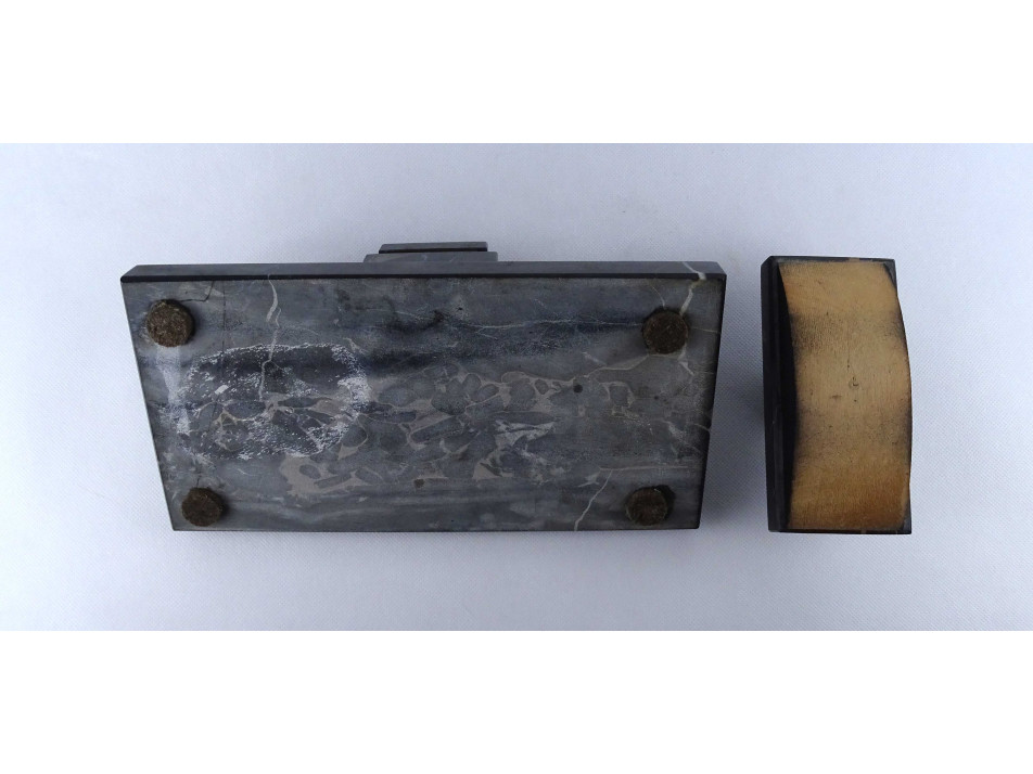 Régi sötétszürke márvány tintatartó kalamáris íróasztali készlet 30 x 15.5 cm