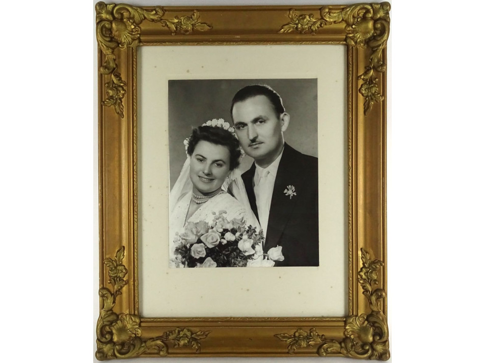 Régi fekete fehér házassági fotográfia Blondel keretben 55 x 45 cm
