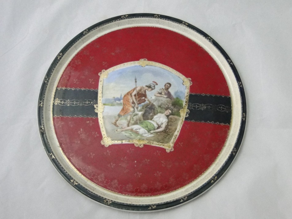 Antik altwien jellegű hibátlan, jelenetes porcelán tortás tál.