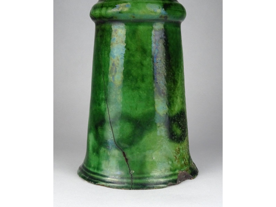 Gyönyörű XIX. századi zöld mázas székelyföldi épület oromdísz. Sakkfigura jellegű égetett zöld mázas cserép kúpdísz. Belsejében gyűjtőtől származó feljegyzés, címke: