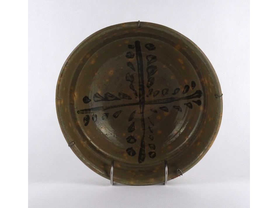 Antik alföldi zöld mázas virágmintás cseréptál 24.5 cm