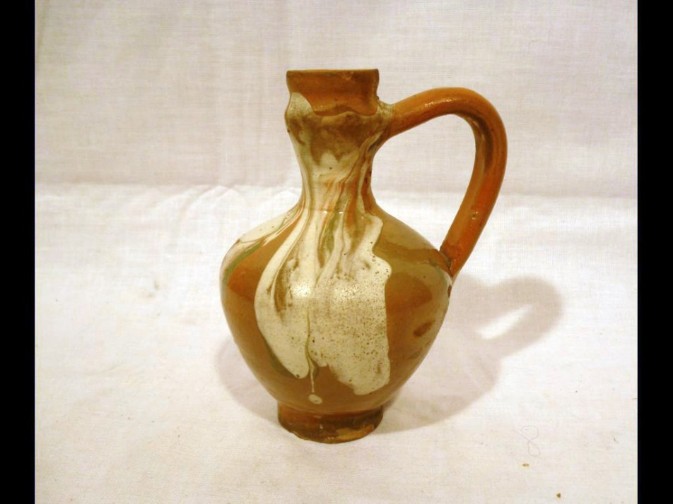 Antik nagyméretű csákvári csíkos cserép köcsög 27 cm
