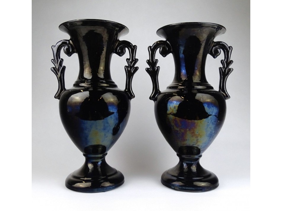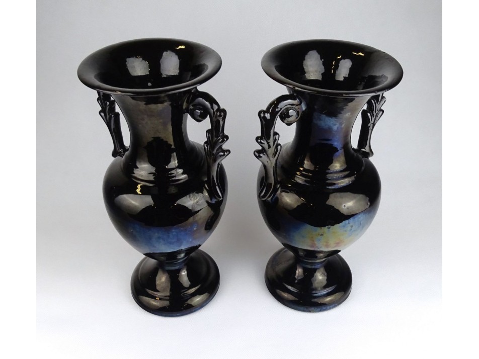 Jelzett, nagy méretű mázas kerámia két füles talpas váza pár.