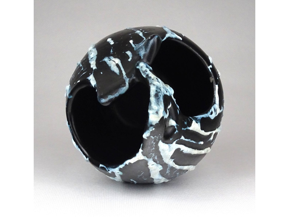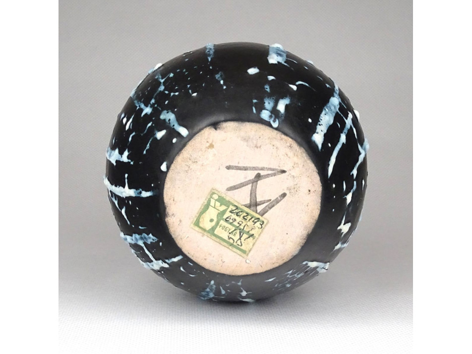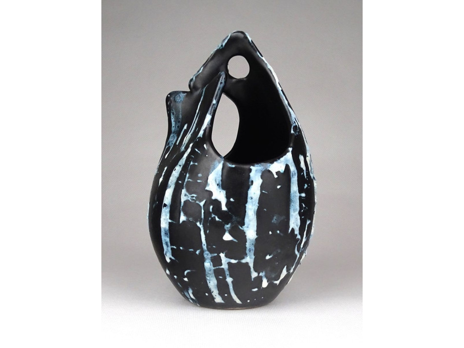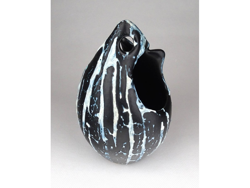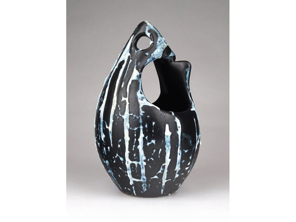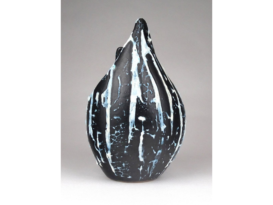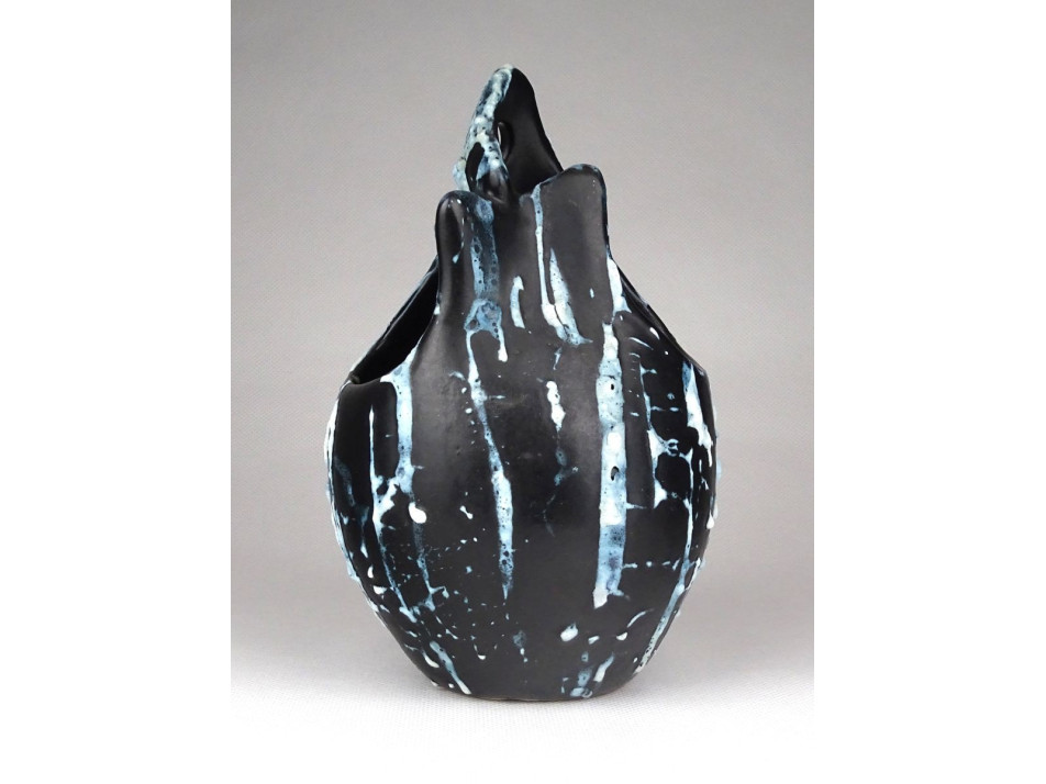 Hibátlan állapotú, csorgatott mázas, retro iparművészeti kerámia váza. A díszváza madarat mintáz.