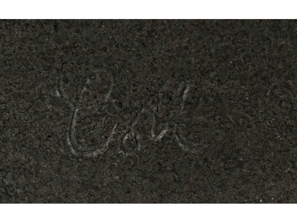 Csizmadia Margit, zöld - narancssárga mázas kerámia padló váza 38.5 cm
