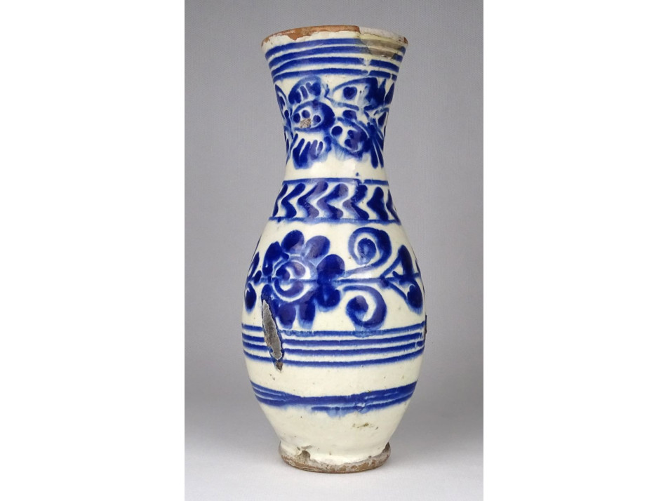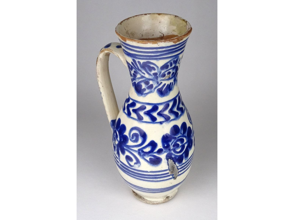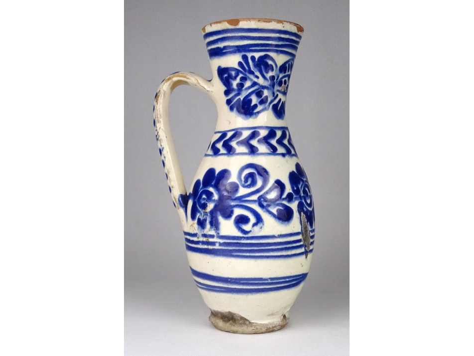 Gyönyörű kobaltkék és fehér mázas, virágdíszes bokály, 1880 körüli.
