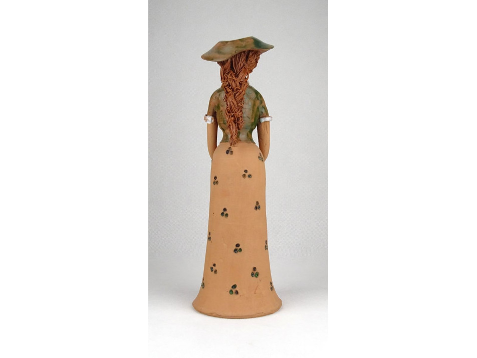 Szép állapotú, jelzett, nagyméretű kalapos kerámia nő figura.