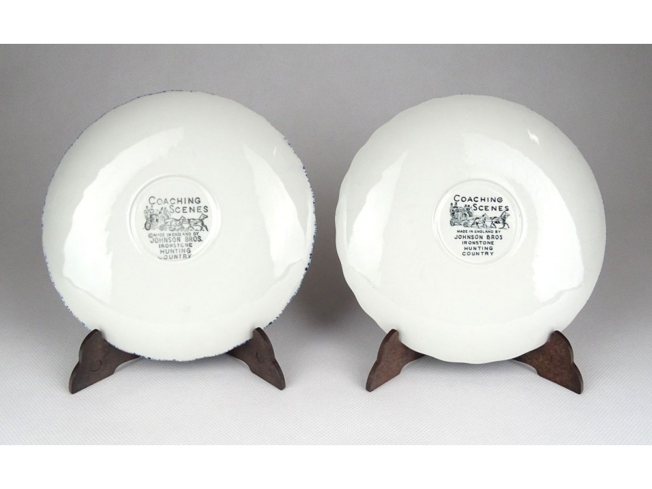 Johnson Bros kék-fehér vadász jelenetes fajansz csészealj tányér pár