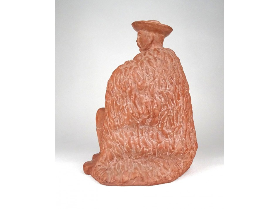 Somogyi Árpád : Ülő juhász terrakotta szobor 21 cm