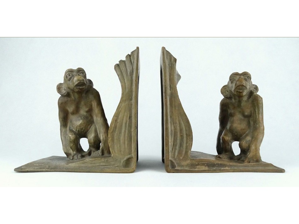 Bedő art deco kerámia majmos könyvtámasz pár 1930-as évekből