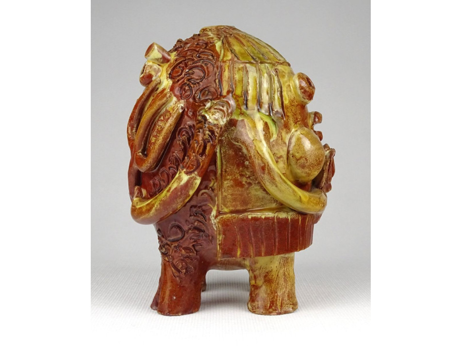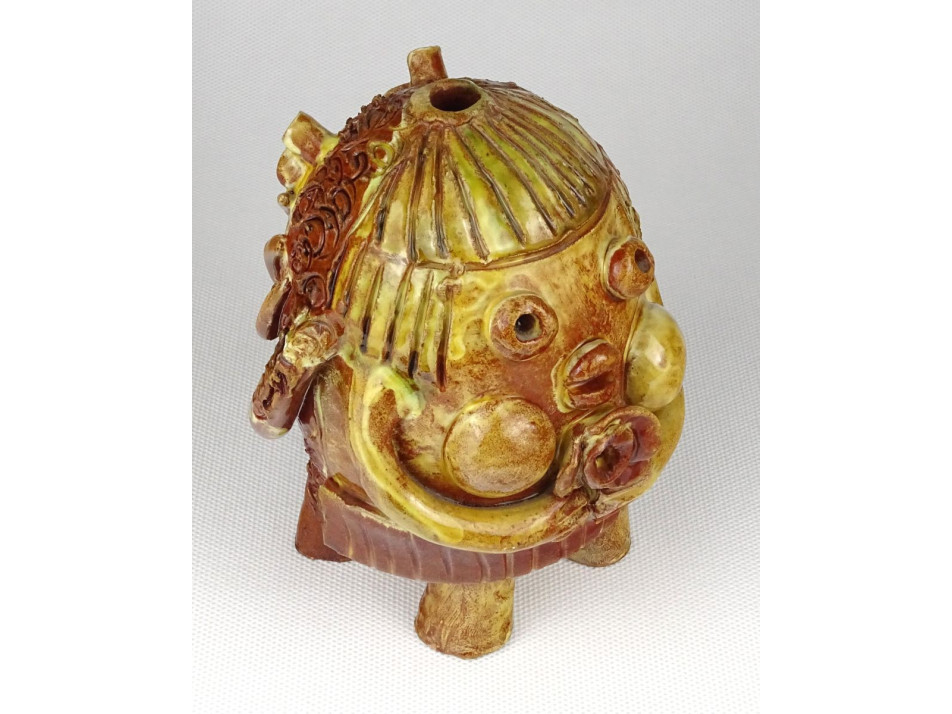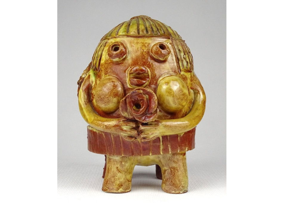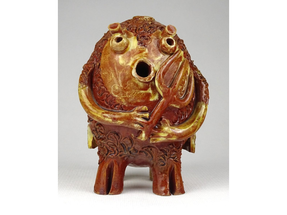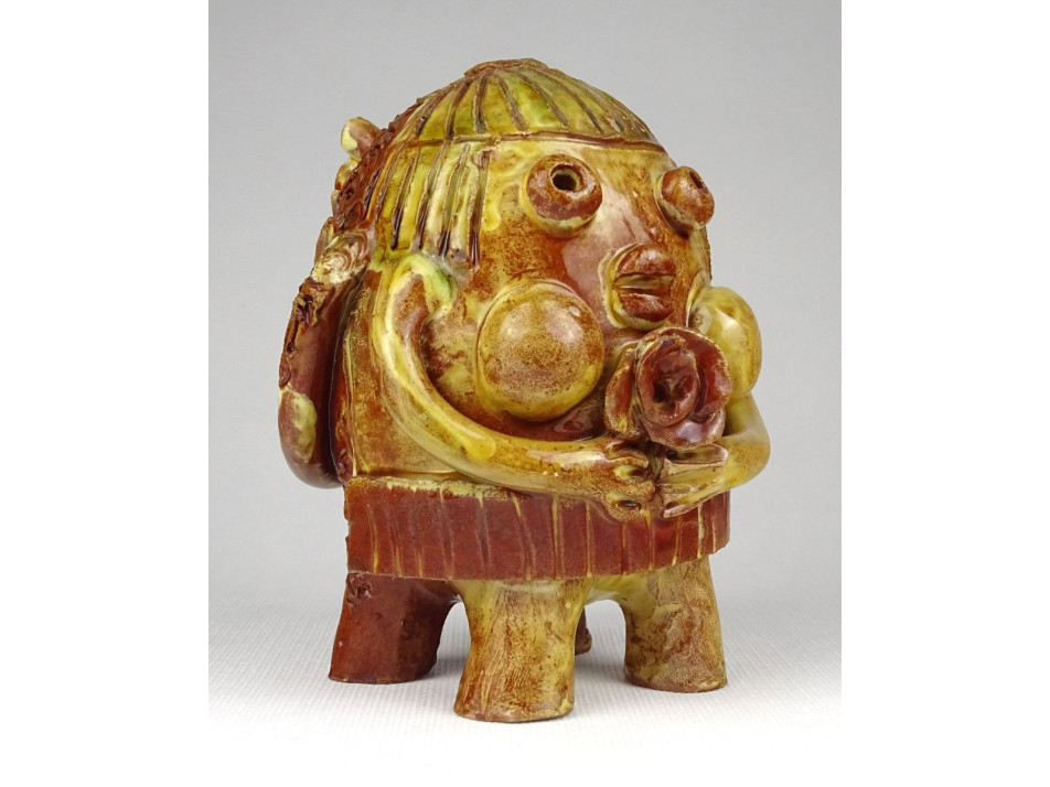 Szép állapotú kerámia figura. Különleges, kétoldalas darab. Egyik oldala maga a patás ördög, másik oldala hölgy virággal.