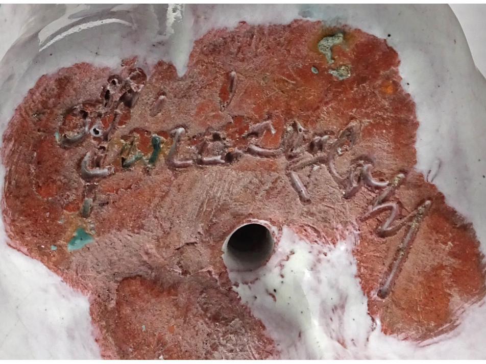 Jelzett hibátlan állapotú kis méretű mázas kerámia angyal, kerámia puttó.