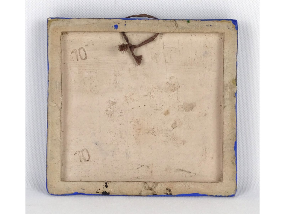 Hibátlan állapotú, kortárs iparművészeti alkotás, falra akasztási lehetőséggel. Kék alapmázon zöld és vörös mázas épületábrázolás, templom látható.