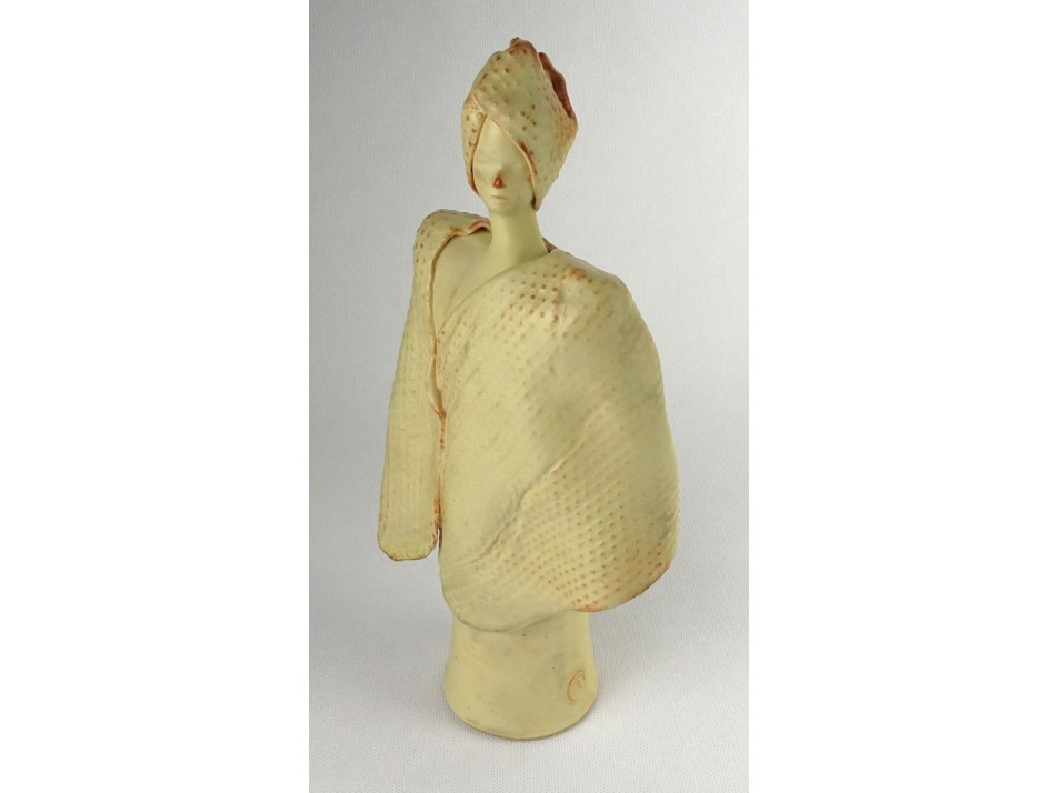 Hibátlan állapotú, jelzett kerámia nő figura. Sárga mázas, kortárs iparművészeti kerámia.