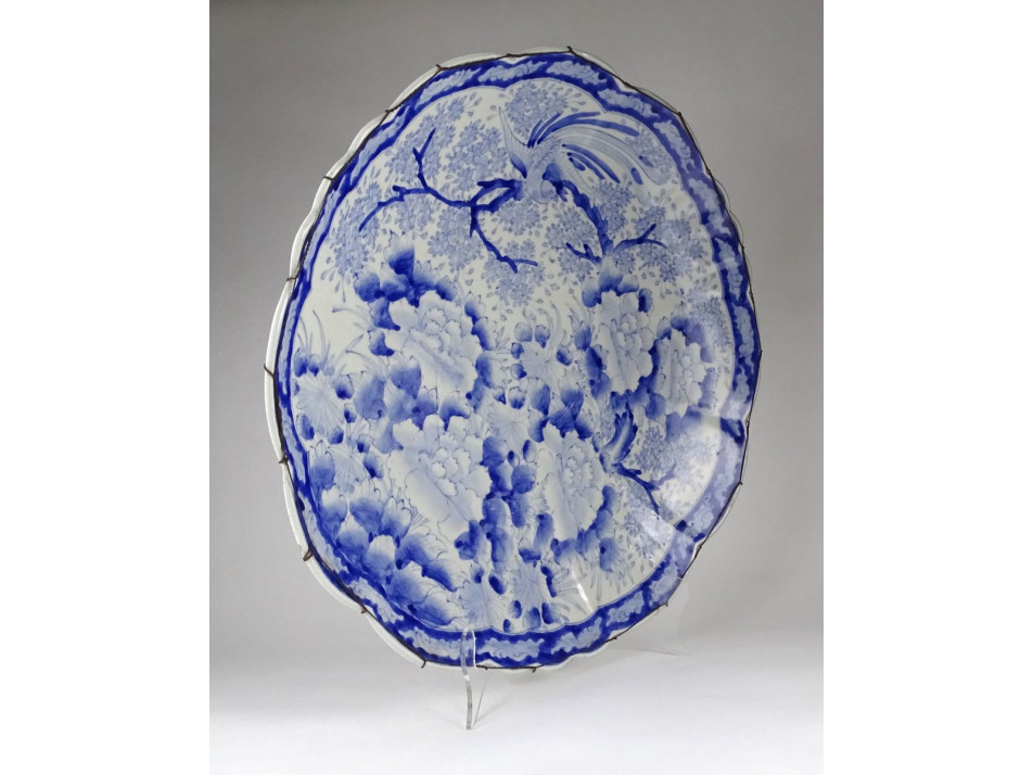 Antik japán nagyméretű főnixmadaras kőcserép tál falitál 46.5 cm