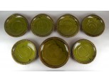 Antik sötétbarna mázas, két füllel rendelkező kézi festéssel díszített mórágyi, sárközi cserép edény, cserép fazék. A darabon repedés található, hangján hallatszik.
