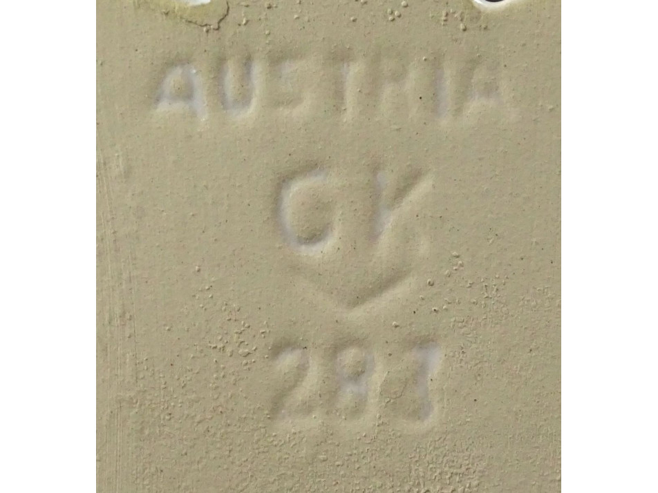 Hibátlan állapotú, jelzett, kézzel festett kerámia szenteltvíztartó. Akasztási lehetőséggel rendelkezik.