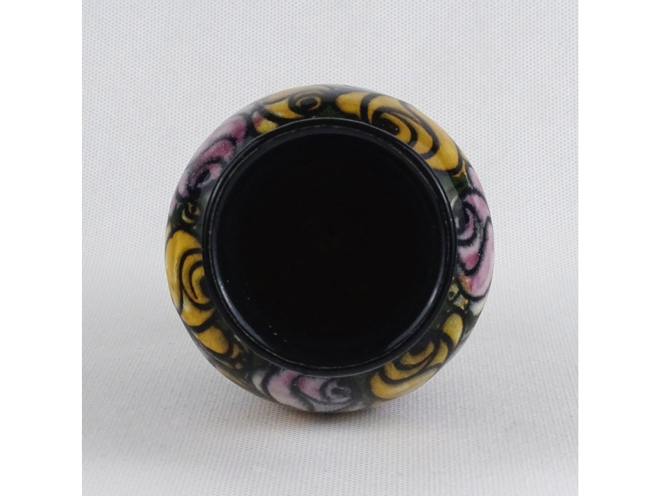 Régi, hibátlan állapotú, kisméretű, kézzel festett, rózsás kerámia art deco váza, kisváza, az 1900-as évek első feléből.