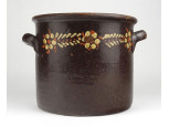 Antik nagyméretű sárga mázas népi cserép korsó 24 cm