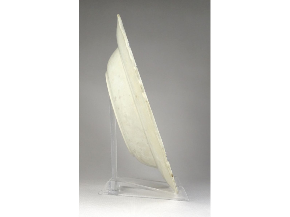 Nagyon régi, hibátlan állapotú, fodros szélű, jelzett nagy méretű fajansz dísztál, dísztányér, kék-fehér athéni Akropolisz díszítéssel.
