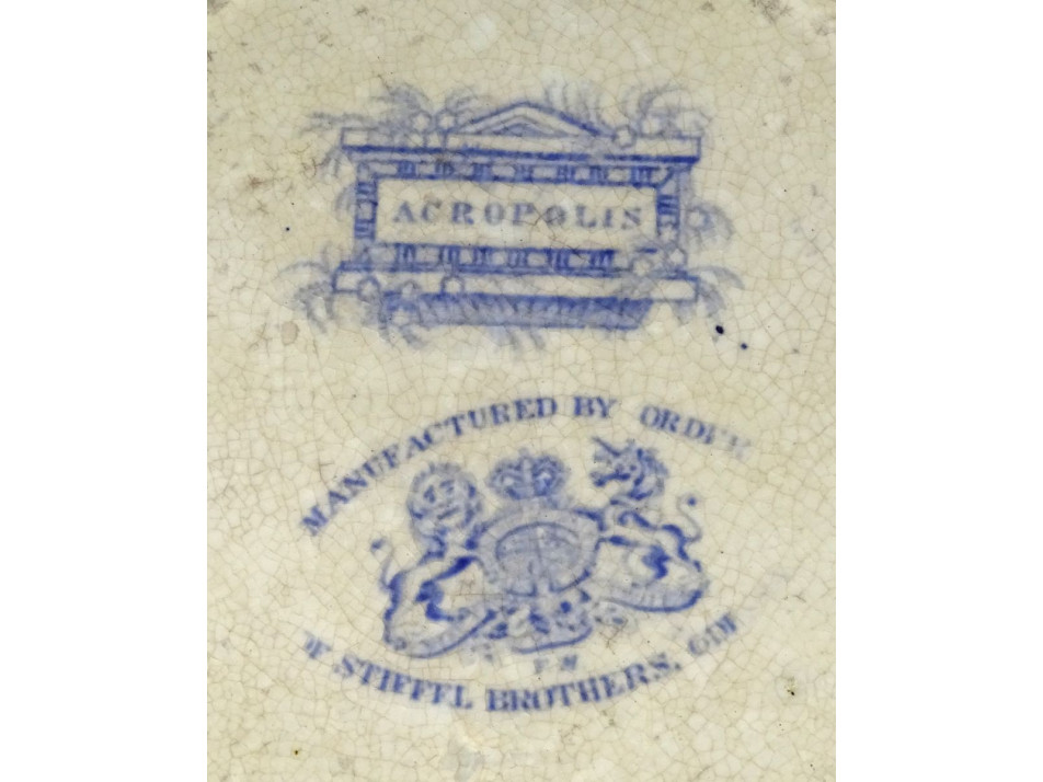 Antik nagyméretű Stiffel Brothers - Acropolis fajansz tányér ~1840