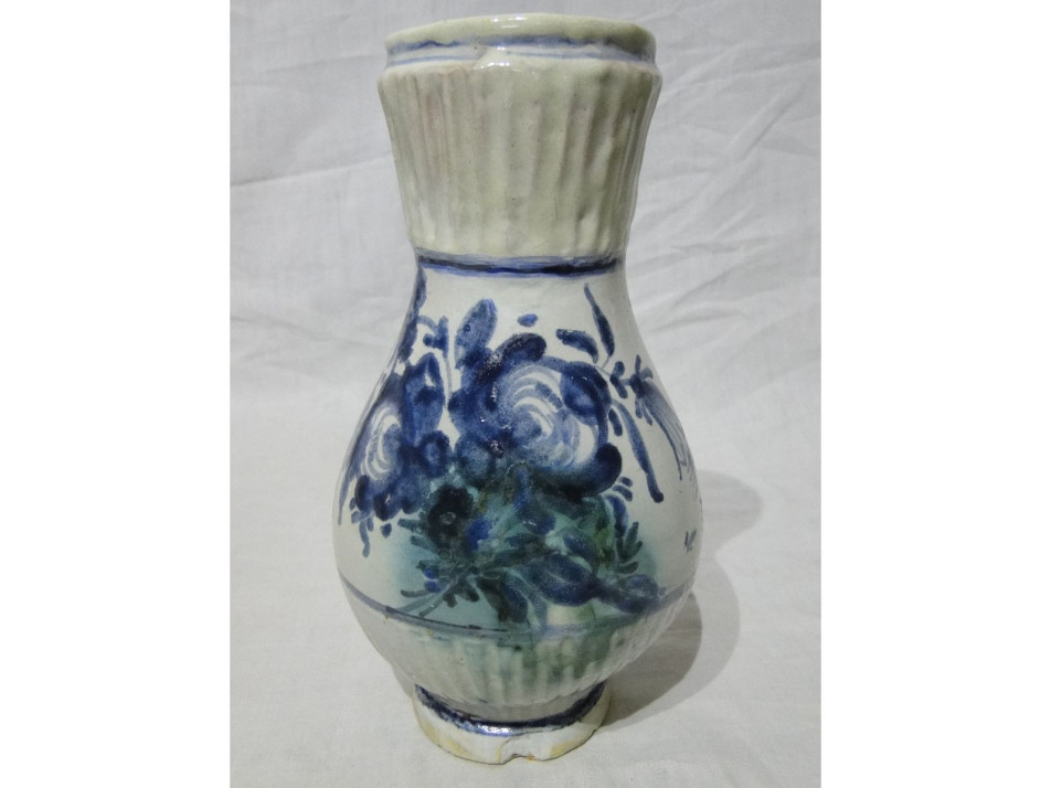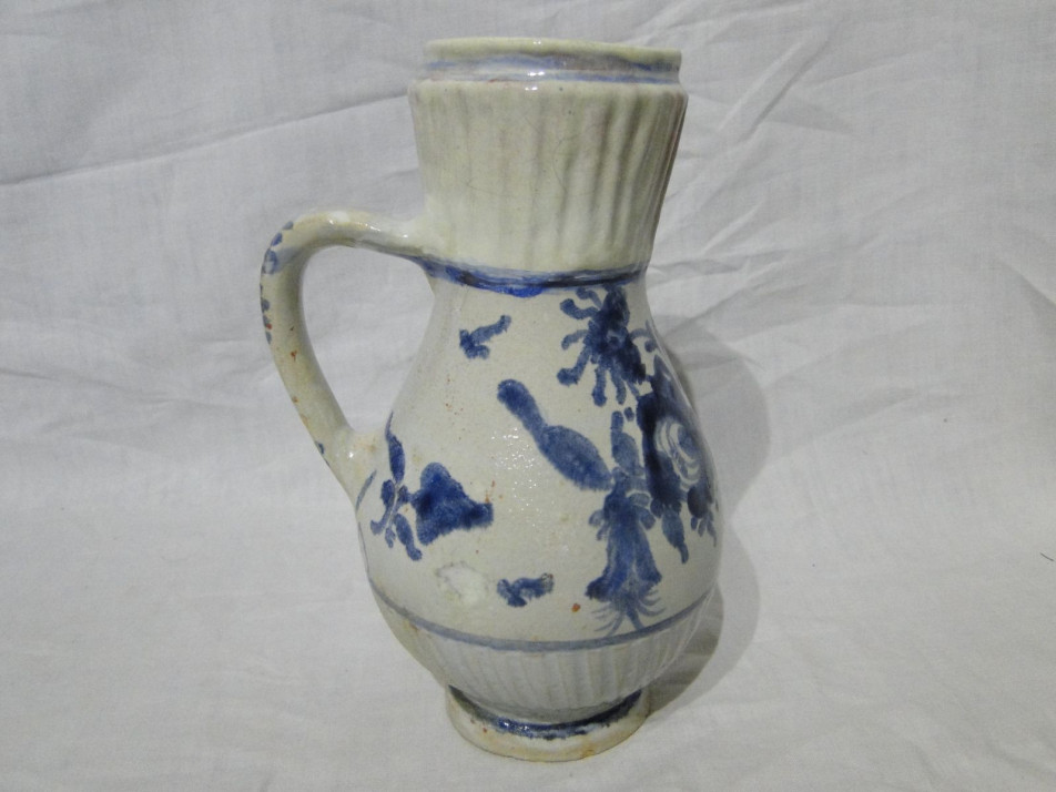 Virágmintás ónmázas bordázott bokály Ausztria, 1850 körüli.