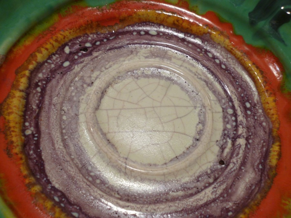 Nagy méretű, szép állapotú, áttört szélű jelzett mázas kerámia asztalközép kínáló tál.