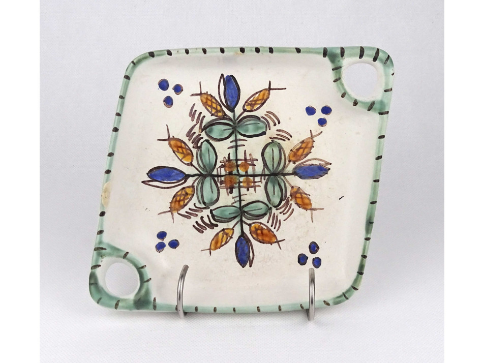 Régi, szép állapotú, kisméretű, virágos, mázas Gorka kerámia asztalközép, kínáló tál. Belső peremén egy kisméretű lepattanás látható.