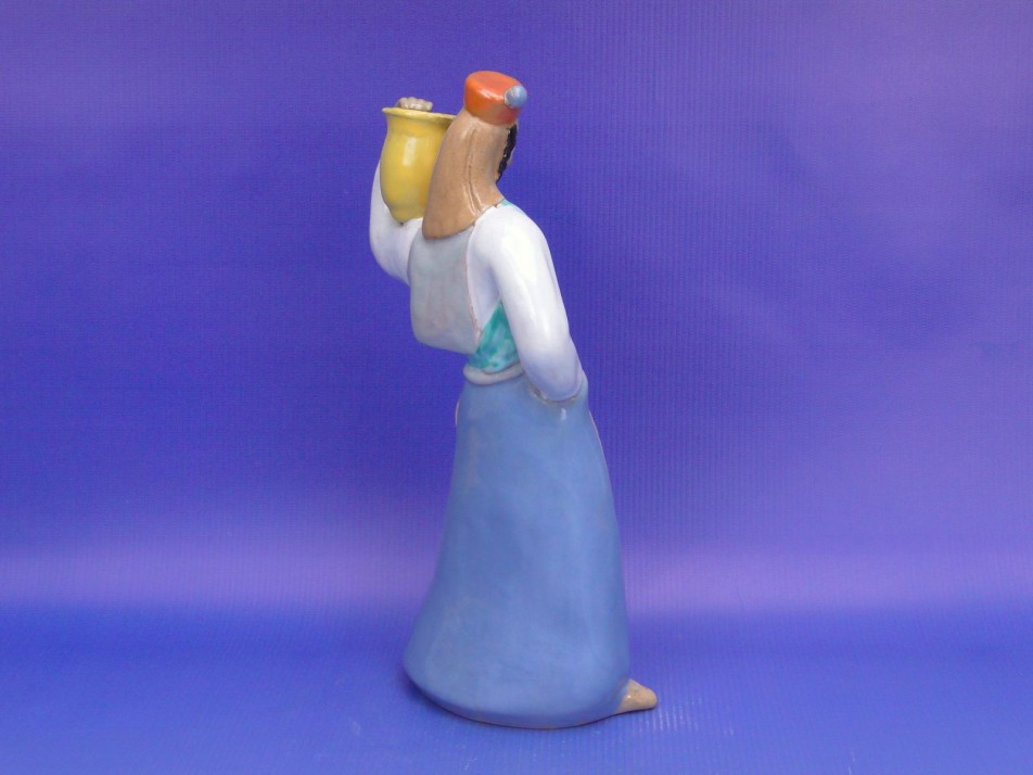 Hibátlan állapotú, antik mázas kerámia, nő korsóval, keleti témájú ábrázolás.