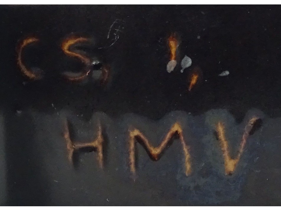 Régi, ép állapotú, jelzett, lábakon álló kerámia boroshordó.