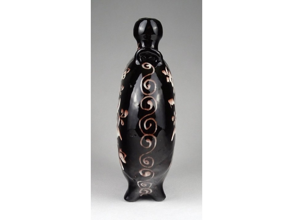 Szép állapotú, jelzett mázas, virágdíszes, nagy méretű kerámia kulacs. Lábain mázhibák találhatók, lásd fotó.
