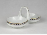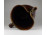 Jelzett barna mázas füles cserép köcsög, cserép edény. Oldala körben népi motívumokkal díszített. A cserép peremén két elfestett kisebb sérülés található, lásd fotó.