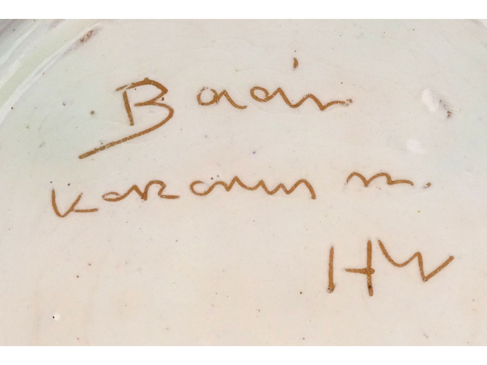 Régi népi szecessziós jelzett Baán Imre madaras kerámia falitál 24.5 cm Hódmezővásárhely