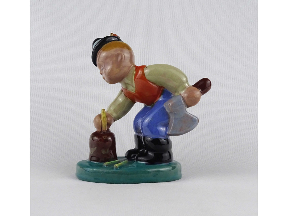 Régi, hibátlan állapotú art deco Komlós favágó kerámia figura.