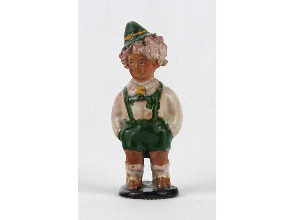 Régi bajor népviseletes kisfiú Szécsi kerámia figura 10.8 cm