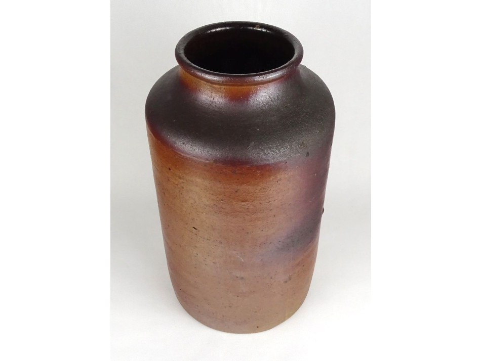 Antik szép állapotú, jelzett, barna színű nagy méretű kőcserép tárolóedény az 1800-as évek végéről.