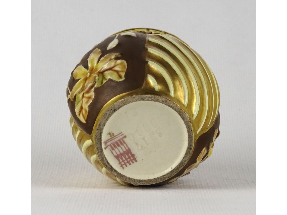 Antik aranyozott virágmintás áttört Zsolnay majolika kaspó