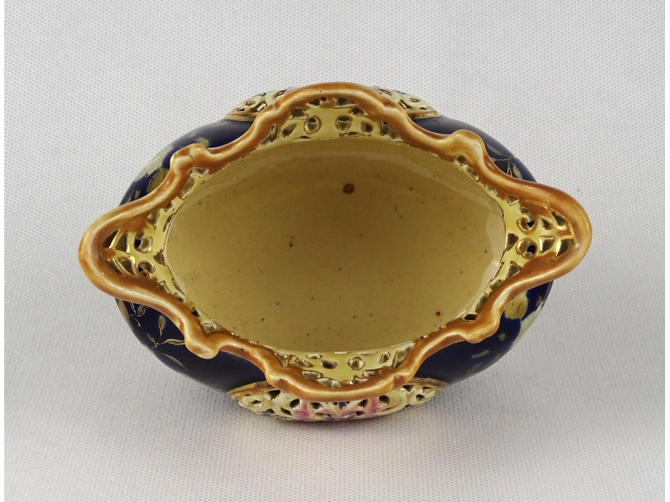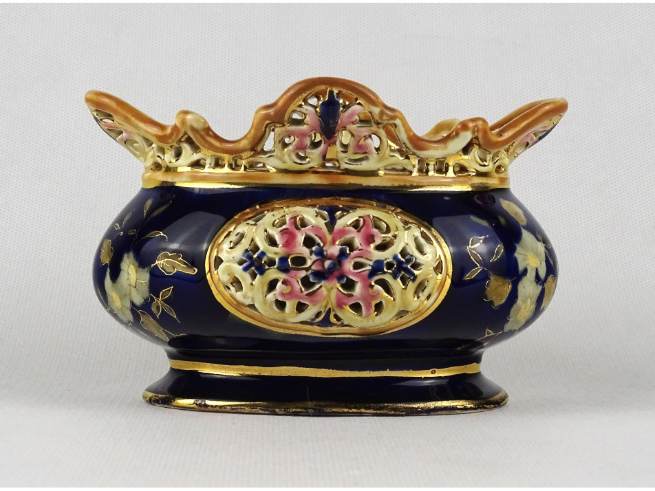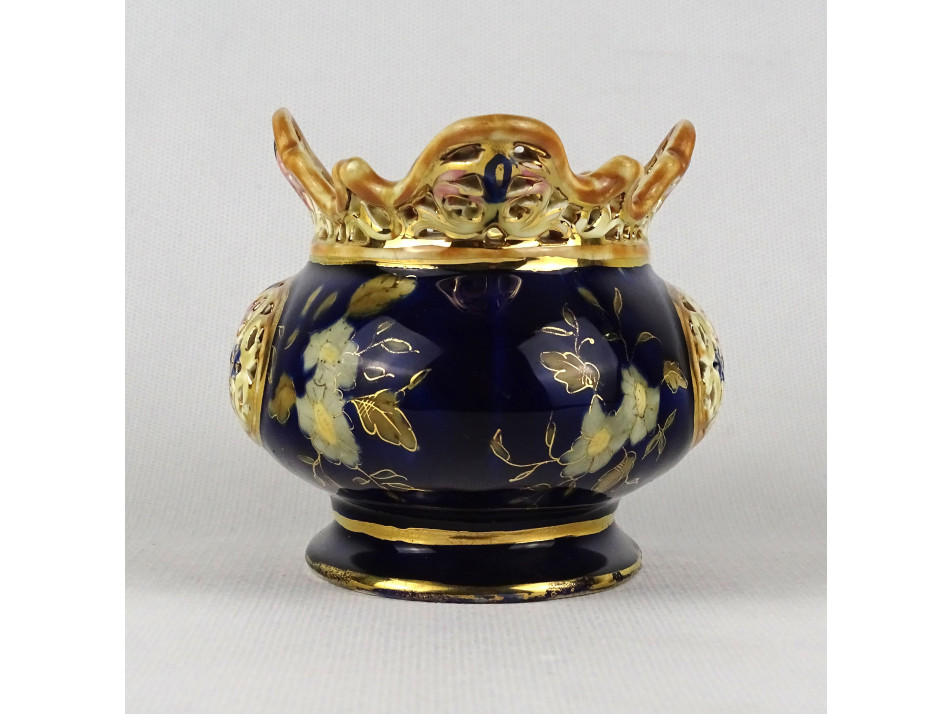 Antik jelzetlen kék színű áttört Zsolnay majolika kaspó