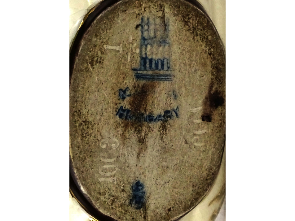 Antik vajszínű áttört ovális Zsolnay majolika kaspó