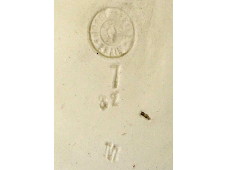 Antik hatalmas méretű feliratos Josef Steidl madaras majolika falitál 32.7 cm