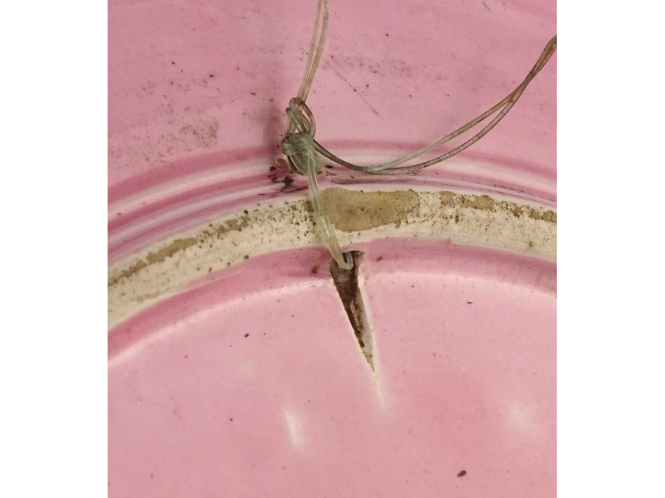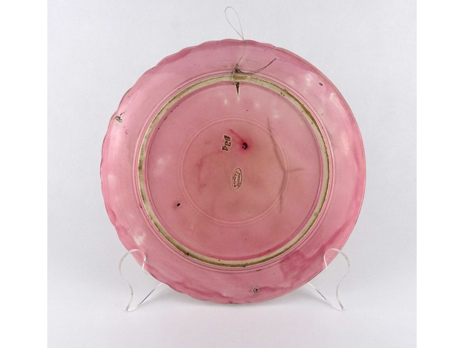 Antik szecessziós, rózsaszín orchideás, majolika Schütz Blansko tál 27 cm