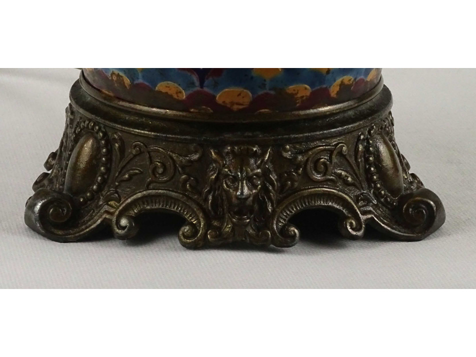 Antik XIX századi jelzett bronz talpas majolika lámpa 71 cm