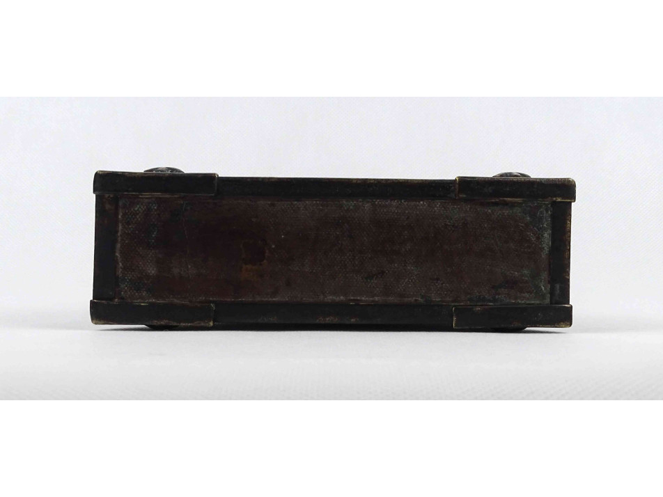 Antik bőr bevonatú fa lőportartó réz pántokkal
