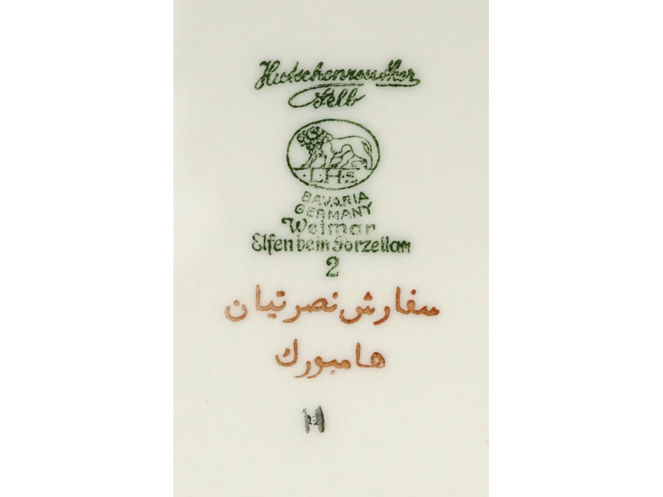 Hibátlan állapotú, jelzett, virágmintákkal díszített vajszínű német, ovális alakú porcelán kínáló tál.