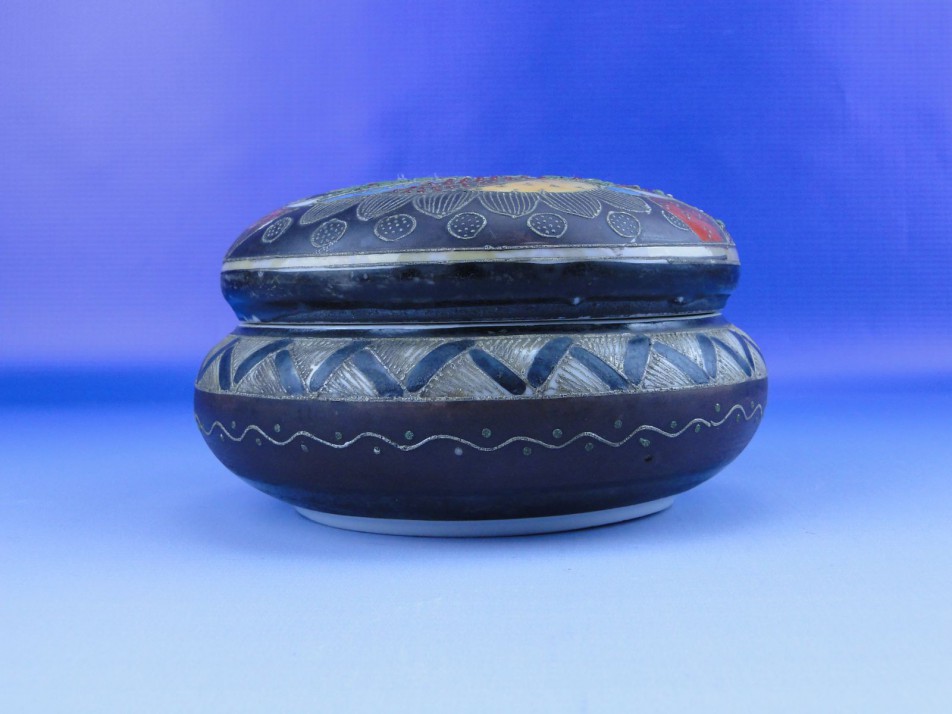 Szép állapotú nagyméretű jelzett, öt alakos satsuma porcelán bonbonier.