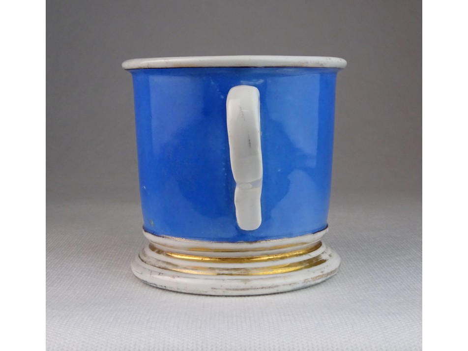 Gyönyörű, kézzel festett, kék színű, antik, vastag falú porcelán bögre, gazdag arany díszítéssel az 1800-as évekből!