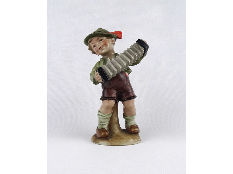 Régi, nagyméretű, hibátlan állapotú Bertram porcelán figura, tangóharmónikán játszó kisfiú.