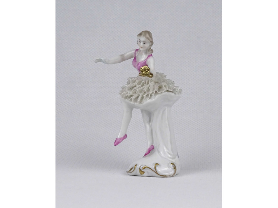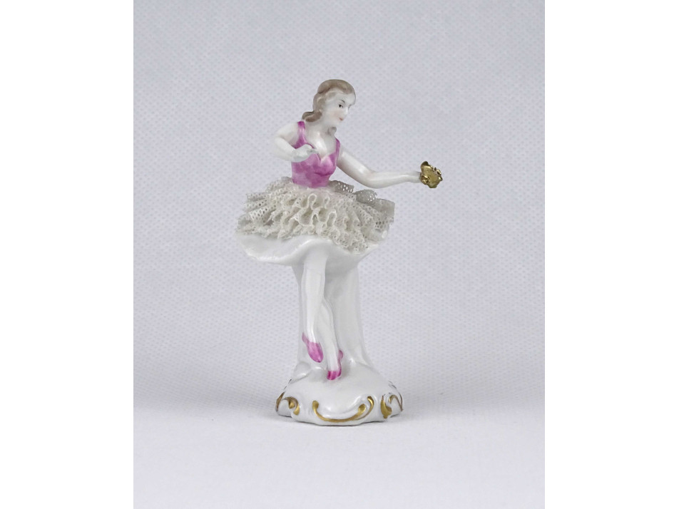 Antik Capodimonte nápolyi fodros szoknyás balerina porcelán figura 8 cm
